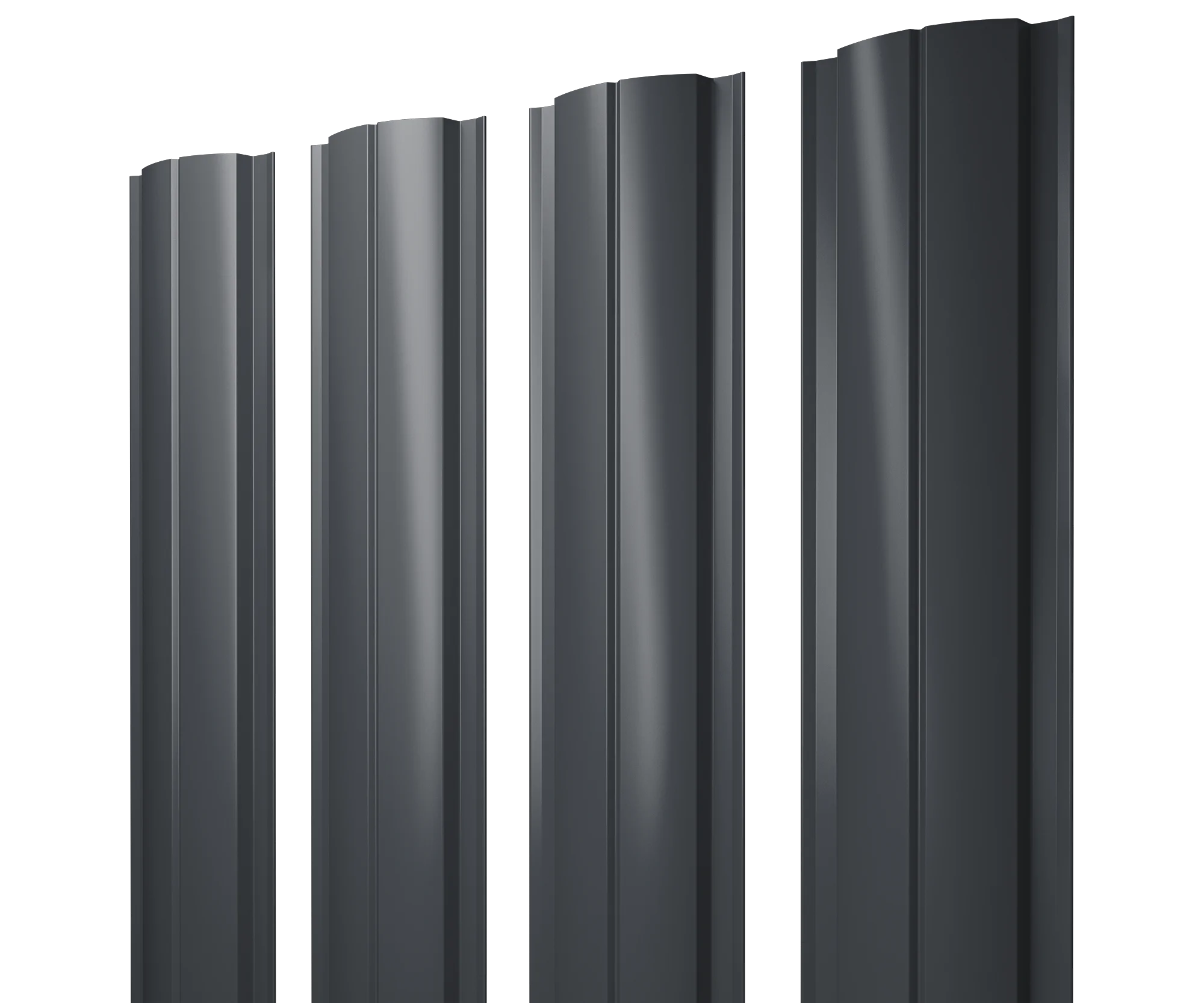 Пользователь также может остановить свой выбор на двустороннем варианте евроштакетника двустороннего полукруглого 0,4x110 мм серого ral 7024 1м. В этом случае вместо тыльного покрытия можно подобрать подходящий цвет краски.